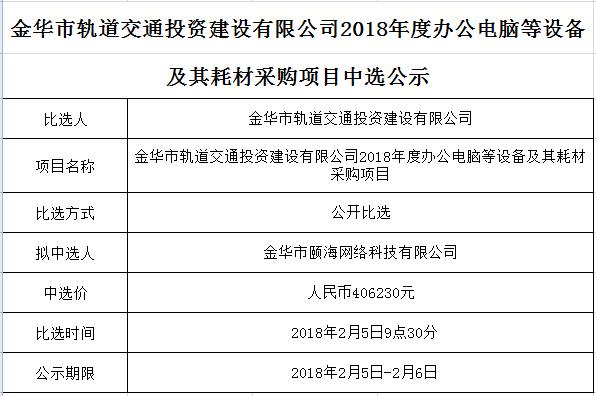 金華市金義東軌道交通有限公司運(yùn)營軌道交通智能巡檢系統(tǒng)采購項目中標(biāo)候選人公示