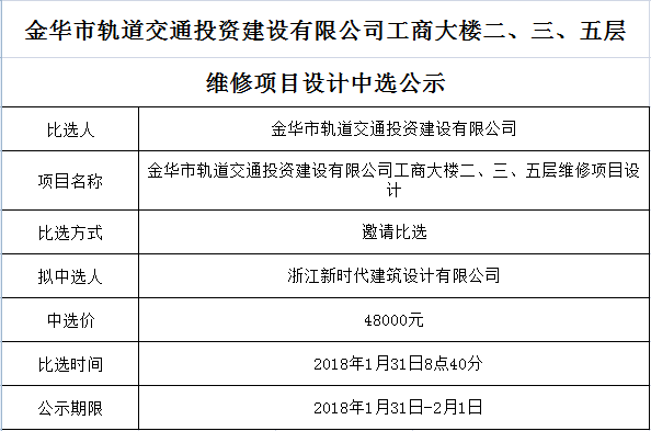 金華市金義東軌道交通有限公司運(yùn)營(yíng)軌道交通智能巡檢系統(tǒng)采購(gòu)項(xiàng)目中標(biāo)候選人公示
