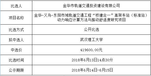 金華市金義東軌道交通有限公司運(yùn)營軌道交通智能巡檢系統(tǒng)采購項(xiàng)目中標(biāo)候選人公示