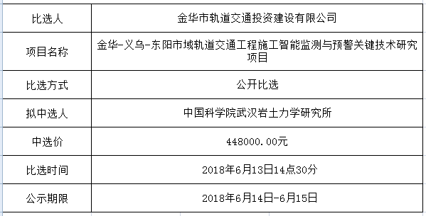 金華市金義東軌道交通有限公司運營環(huán)境長效管理系統(tǒng)項目中標候選人公示