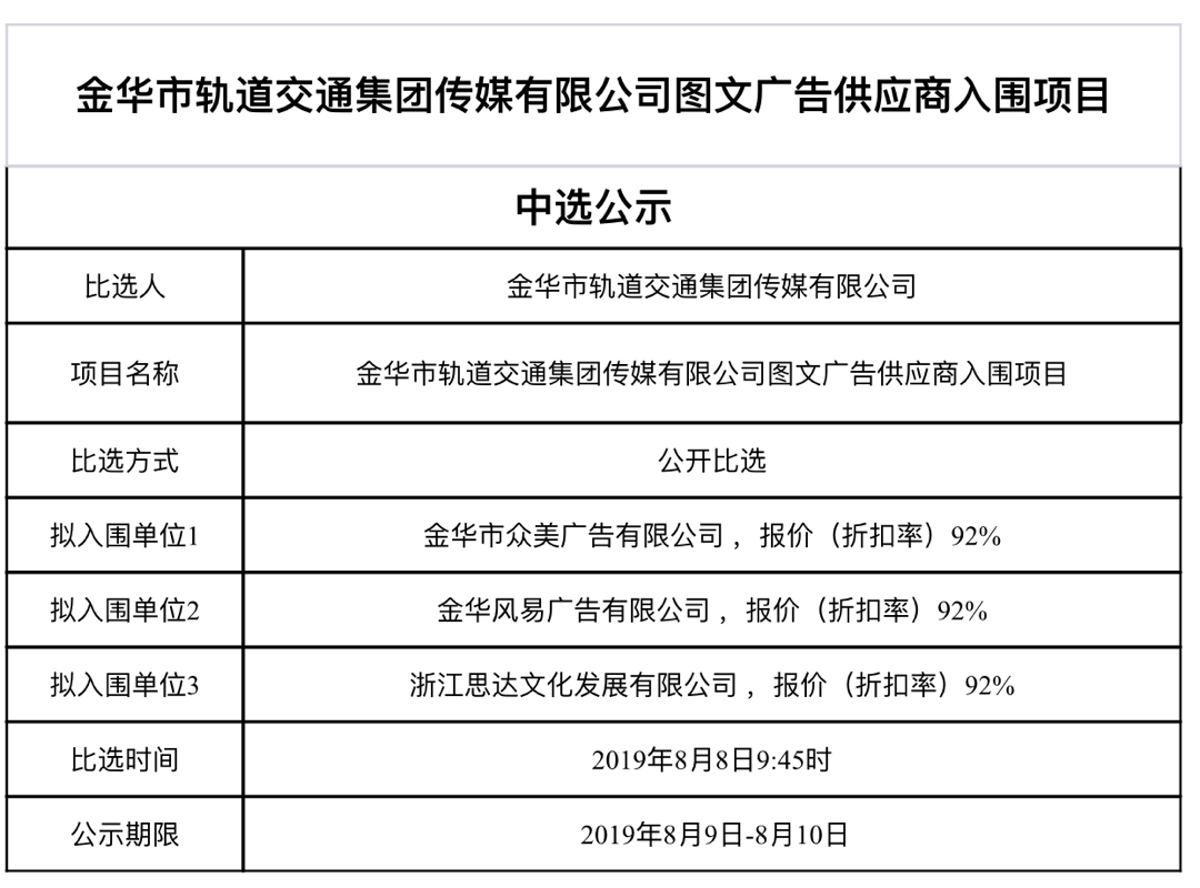 金華市金義東軌道交通有限公司運(yùn)營(yíng)環(huán)境長(zhǎng)效管理系統(tǒng)項(xiàng)目中標(biāo)候選人公示