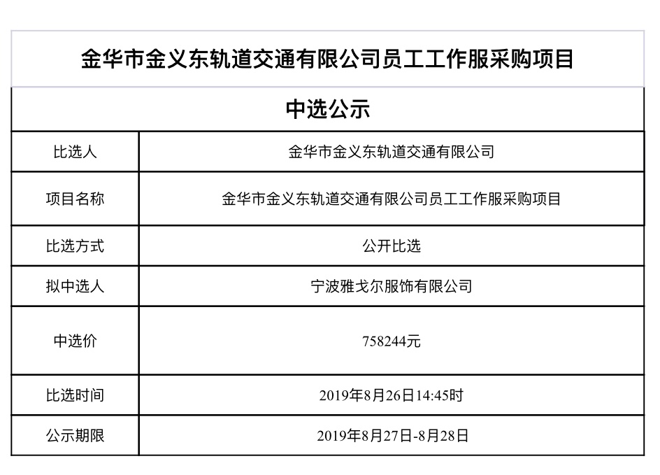 金華市金義東軌道交通有限公司運營環(huán)境長效管理系統(tǒng)項目中標候選人公示