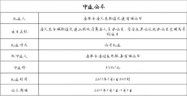 金華市金義東軌道交通有限公司運營環(huán)境長效管理系統(tǒng)項目中標候選人公示