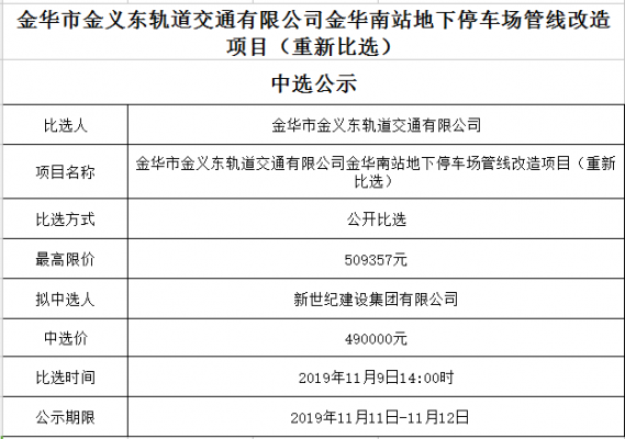 金華市金義東軌道交通有限公司運營環(huán)境長效管理系統(tǒng)項目中標候選人公示