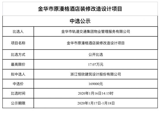 中選公示(酒店裝修設(shè)計(jì))