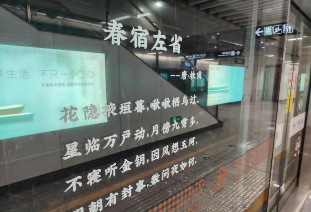 站臺門上,古詩詞與廉潔標(biāo)語精心交錯(cuò),詩意與廉語交融。